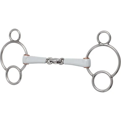 Ons nieuwe enkel- en dubbelgebroken kunststof mondstuk is bijzonder slank van formaat – brede contactvlakken en een lage hoogte zorgen voor meer comfort, zelfs in kleinere paardenmonden. Het oppervlak van het plastic is erg glad en glijdt goed in de mond, zelfs van paarden die niet veel speeksel maken. Het mondstuk met een breed contactoppervlak op de tong en lippen gaat zachtjes over in een gedraaide passende olijf. De gewrichten en het middenstuk zijn fijn vervaardigd en passen bij de lage hoogte van het mondstuk. Soepel glijden van de bitringen wordt gegarandeerd door geïntegreerde koperen bussen.