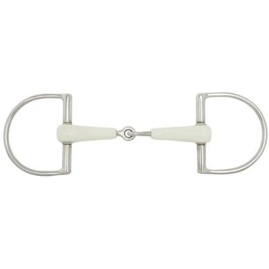 Deze enkel gebroken D-trens heeft een kunststof mondstuk met een metalen kern en roestvrijstalen ringen. Dankzij de combinatie van flexibel kunststof en hoogwaardig roestvrij staal, zijn de bitten stabiel, maar toch bijzonder zacht en vriendelijk. Het kunststof heeft een hardheid van 90A en is FDA goedgekeurd. Dit betekent dat het materiaal vrij is van oplosmiddelen, geen weekmakers bevat en bovendien niet giftig is. De bitten kunnen gebruikt worden voor alle paarden en zijn uitermate geschikt voor jonge paarden, paarden met een gevoelige mond en paarden die andere materialen moeilijk accepteren. Het bit heeft een zachte inwerking op de mond. Het mondstuk heeft een dikte van 18 mm en de bitringen hebben een diameter van 70 mm. Een D-trens heeft D-ringen die niet vrij kunnen draaien, daardoor werken hulpen directer in. Dit type bit wordt over het algemeen goed geaccepteerd, doordat het mondstuk relatief stevig in de mond ligt. Door de D-vorm kan de ruiter het bit niet door de mond trekken en blijft het paard goed bestuurbaar, hierdoor is het bit ook geschikt voor jonge paarden. Bij een dubbel gebroken bit bestaat het mondstuk uit drie delen. Het middelste gedeelte van het mondstuk ligt plat op de tong. Hierdoor ontstaat er meer druk op de tong dan bij een enkel gebroken mondstuk. Hoe dikker het middenstuk, des te meer druk op de tong.