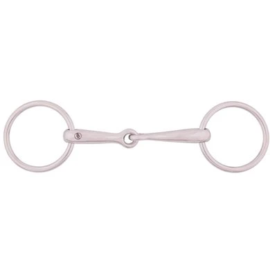 Enkel gebroken, pony, massief roestvrij staal, ringen 55 mm. Het mondstuk heeft een dikte van 14 mm.