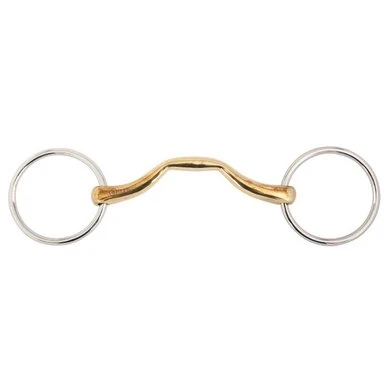 BR ongebroken watertrens Soft Contact 14 mm De Soft Contact bitten zijn anatomisch. Daarnaast hebben ze een luxe uitstraling dankzij het mondstuk met gouden kleur en je paard vindt het nog lekker ook!