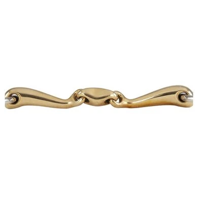 BR dubbel gebroken watertrens Soft Contact gebogen mondstuk 16 mm De Soft Contact bitten zijn anatomisch. Daarnaast hebben ze een luxe uitstraling dankzij het mondstuk met gouden kleur en je paard vindt het nog lekker ook!