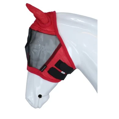 Licht vliegenmasker met fleece randen en synthetische schapenvacht op het voorhoofd. Heel zachte mesh rond de oren. Blijft goed zitten dankzij een bevestiging met twee klittenbanden en ruimte voor de voorpluk. Samenstelling: Polyester / PVC.