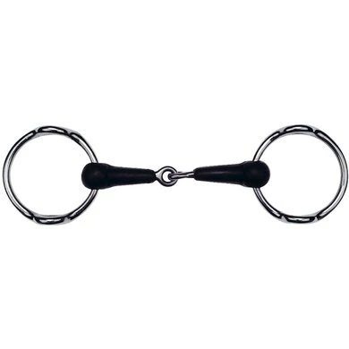 Van roestvrijstaal met gebroken, rubberen mondstuk. Diameter van de ringen : 75 mm, mondstuk : Massief