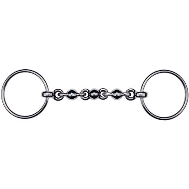 Van roestvrijstaal. Mondstuk met schakels. Voelt soepel aan, maar kan pittig zijn indien met harde hand gebruikt.