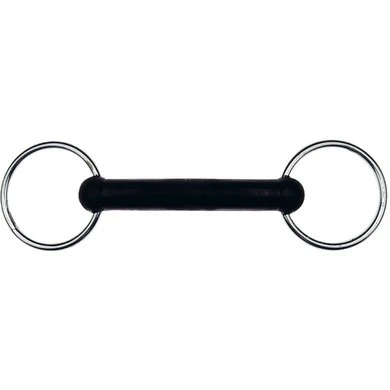 Ongebroken, van rubber. Te gebruiken voor de voorbereidende dressuur of longeren. Dikte van het mondstuk : 18 mm, soepel, Diameter van de ringen : 65 mm, mondstuk : Massief
