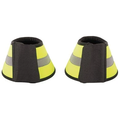 Springschoenen in fluoriserend gele stof met reflectie streep erop om je paard beter zichtbaar te maken in het donker.