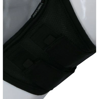 De Harrys Horse flyshield vliegenmasker met coupenaden bij de ogen is gemaakt van stevig materiaal, rondom met fleece afgebiesd, zachte lycra oren.Geheel afgezet met elastiek, zodat het masker perfect aansluit op het paardenhoofd en tegelijkertijd comfortabel zit. Klittenbandsluiting bij de keel.