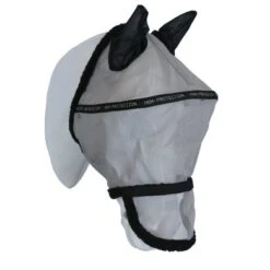 Het HKM vliegenmasker met afneembaar neusnetje heeft een zeer goede oogafstand en is te bevestigen doormiddel van klittenband.