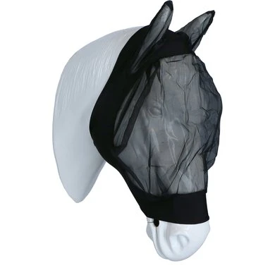 Nauwsluitend vliegenmasker met zeer fijnmazig netweefsel waar zelfs minuscule vliegen niet doorheen kunnen. Elastisch, aangenaam licht polyesterweefsel voor een optimale houvast en pasvorm.