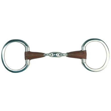 Roestvrij stalen, dubbelgebroken, met leer bekleed hol mondstukmet ovaal tussenstuk.