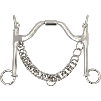 Het is wenselijk bij een Myler bit dat er een klein stukje bit aan iedere kant net buiten de lippen te zien is. Meer dan dat u gewend bent. Dit komt door de U-vormige vormgeving van het mondstuk. Het mondstuk komt om de 1e kies en rond om de mondhoek naar buiten en de bitring zoekt dan de wang als wangsteun. Dit geeft meer zichtbaarheid van het mondstuk van het bit.