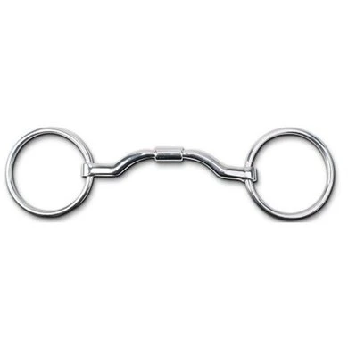 Het is wenselijk bij een Myler bit dat er een klein stukje bit aan iedere kant net buiten de lippen te zien is. Meer dan dat u gewend bent. Dit komt door de U-vormige vormgeving van het mondstuk. Het mondstuk komt om de 1e kies en rond om de mondhoek naar buiten en de bitring zoekt dan de wang als wangsteun. Dit geeft meer zichtbaarheid van het mondstuk van het bit.