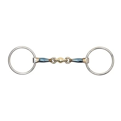 Watertrens met losse koperen lichtmetalen schijven in het midden. Deze kunnen helpen om een kieskeurig paard rustig te rijden.
