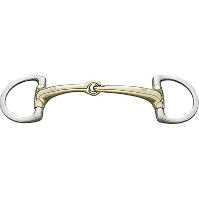 Enkelgebroken Dynamic onderleg D-ring vorm trens. 14mm dik. 11,5cm breed. Materiaal Sensogan met RVS ringen. De ergonomische vorm zorgt voor een zachte en evenredige verdeling van druk. Effectieve en directe inwerking van de teugelhulpen. Het middenstuk is 45 graden gekanteld, waardoor het bit optimaal op de tong komt te liggen. Stimuleert de aanname van het bit. Geschikt voor gevoelige paarden of paarden met een dikke tong. Ligt stabiel in de mond door de zijdelingse begrenzing van de vaste ringen.
