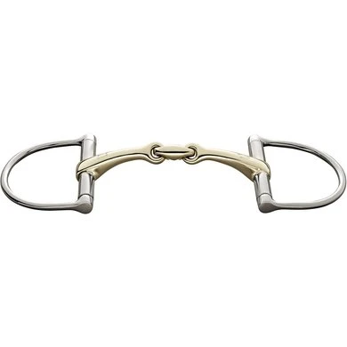 Dubbelgebroken Dynamic D-trens. 14mm dik. 12,5cm breed. Materiaal Sensogan met RVS ringen. De ergonomische vorm zorgt voor een zachte en evenredige verdeling van druk. Het middenstuk is 45 graden gekanteld, waardoor het bit optimaal op de tong komt te liggen. Stimuleert de aanname van het bit. Geschikt voor gevoelige paarden of paarden met een dikke tong. Ligt stabiel in de mond door de zijdelingse begrenzing van de vaste ringen.