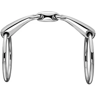 Dubbelgebroken MAX control watertrens. 14mm dik. 12,5cm breed. Materiaal roestvrijstaal. Het uiterlijk van een MAX control bit is bijna gelijk aan een regulier dubbelgebroken bit. Bij de MAX control bitten blokkeert het mondstuk bij een bepaalde druk echter en verandert het in een ongebroken stang. Wanneer deze druk afneemt doordat de ruiterhand kan ontspannen, komt de functie van een normaal dubbelgebroken bit terug. Hierdoor heb je meer controle wanneer een paard erg sterk wordt.