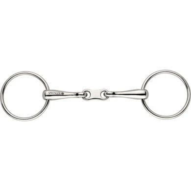 Dubbelgebroken watertrens. 16mm dik. 12,5cm breed. Materiaal RVS. Tussenstukje is platgeslagen waardoor het een scherpere inwerking heeft op de tong.