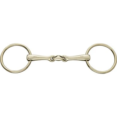 ‘Dubbelgebroken KK Ultra watertrens. 16mm dik. 12,5cm breed. Materiaal Sensogan met Aurigan ringen. Stimuleert de speekselaanmaak, de kauwactiviteit en daarmee de aanname van het bit. Het middenstuk is 45 graden gekanteld, waardoor het bit optimaal op de tong komt te liggen. Voor optimale verfijning en verbetering van de aanleuning.