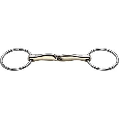 Enkelgebroken novocontact watertrens. 16mm dik. 11,5cm breed. Materiaal Sensogan met RVS ringen. Stimuleert speekselaanmaak, kauwactiviteit en de aanname van het bit. Het ovalen mondstuk van de novocontact vergroot de oppervlakte van inwerking op de tong voor een zachte, duidelijke inwerking. Geschikt voor paarden die moeite hebben het bit aan te nemen en daardoor snel achter de teugel komen.
