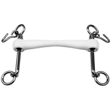 Een baby dressuur-pompstang wordt samen met een onderlegtrens gebruikt, de zogenaamde stang en trens. Deze combinatie wordt gebruikt in de hogere dressuur klassen. Door de pompfunctie zit er meer beweging in het bit. Het paard kan naar behoefte het bit iets oplichten om de druk op de tong te verminderen. De dressuurstang is een kaakstuk met hefboomwerking. Hoe langer de scharen hoe scherper de inwerking. De baby pomp-dressuurstang heeft korte scharen en heeft daarom een mildere inwerking dan de normale pomp-dressuurstang. Voor een stang en trens combinatie is een speciaal stang en trens hoofdstel vereist of een extra bakstuk. Daarnaast moet dit kaakstuk altijd gecombineerd worden met een kinketting om te voorkomen dat het bit doorslaat. Dit bit is niet geschikt voor de onervaren ruiter. De Inno Sense Flexi Soft bitten worden gemaakt van elastisch kunststof en zijn zeer flexibel wat het bit erg vriendelijke maakt. Ondanks de flexibiliteit is een Inno Sense Flexi Soft bit heel solide door de toepassing van een flexibele kern van roestvrij staal. Bitten uit de Inno Sense collectie kunnen voor alle paarden gebruikt worden maar zijn in het bijzonder geschikt voor jonge paarden en paarden met een gevoelige mond. Het gebruikte kunststof is FDA approved, wat wil zeggen dat het materiaal niet giftig is en geen weekmakers bevat. Paarden die gereden worden op een Inno Sense mondstuk volgen de hand gemakkelijk en nemen het bit snel aan. De Inno Sense flexi soft is minder geschikt voor zeer sterke paarden. De bitten van TRUST equestrian zijn oer-Hollands. Alle bitten worden ontworpen, ontwikkeld en handgemaakt in Nederland. Dagelijks werkt een team van technische professionals aan de productie. De bitten worden met de grootste zorg samengesteld en van de beste materialen gemaakt. De kwaliteitscontrole en standaard zijn hierdoor erg hoog. Bij ieder ontwerp wordt er continu rekening gehouden met de balans tussen vorm, materiaal en gewicht. De bitten van TRUST zijn licht gebogen waardoor ze beter naar de mond van het paard vormen. Door deze anatomische vorm ligt het bit beter in de mond en wordt de druk beter verdeeld. Door de ruime keuze van mondstukken, kaakstukken en materialen streeft TRUST ernaar om voor ieder paard een passend bit te hebben.