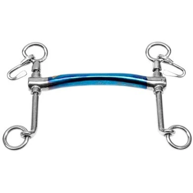 Een baby dressuur-pompstang wordt samen met een onderlegtrens gebruikt, de zogenaamde stang en trens. Deze combinatie wordt gebruikt in de hogere dressuur klassen. Door de pompfunctie zit er meer beweging in het bit. Het paard kan naar behoefte het bit iets oplichten om de druk op de tong te verminderen. De dressuurstang is een kaakstuk met hefboomwerking. Hoe langer de scharen hoe scherper de inwerking. De baby pomp-dressuurstang heeft korte scharen en heeft daarom een mildere inwerking dan de normale pomp-dressuurstang. Voor een stang en trens combinatie is een speciaal stang en trens hoofdstel vereist of een extra bakstuk. Daarnaast moet dit kaakstuk altijd gecombineerd worden met een kinketting om te voorkomen dat het bit doorslaat. Dit bit is niet geschikt voor de onervaren ruiter Het arched mondstuk is een stang met een lichte buiging. Door de buiging in het bit is er ruimte voor de tong en wordt de druk verspreid over de tong, de lagen en de lippen. Met het arched mondstuk heb je een gelijkmatige drukverdeling in de mond. De Sweet Iron bitten zijn gemaakt van staal en hebben een herkenbare blauwe kleur. Sweet Iron ontwikkelt door contact met (lucht)vochtigheid oppervlakteroest die zoet smaakt en op een natuurlijke manier de speekselaanmaak van het paard stimuleert. Hierdoor zal het paard meer gaan schuimen, wat zorgt voor een betere acceptatie van het bit. Dit roestproces (oxidatie) verandert de blauwe kleur van de TRUST-bitten in bruingrijs. Dit is een gewenst effect van de Sweet Iron bitten. Bij het tijdelijk niet gebruiken van een Sweet Iron bit kan zich een oranjebruin roestlaagje op het mondstuk vormen. Dit kan eenvoudig worden verwijderd door het bit af te nemen met een vochtige doek.