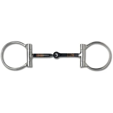 Eenvoudig gebroken trensbit, sweet-iron mondstuk met koperen inlays.
