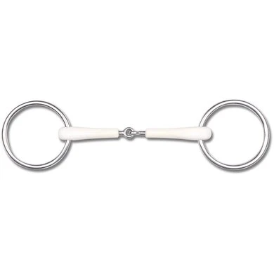 Het hoogwaardige thermoplastische materiaal wordt zeer goed verdragen en stimuleert de kauwactiviteit. Het contact met de paardenmond wordt verfijnd en bevordert zo de tevredenheid en prestatiebereidheid van uw paard. De ringen zijn gemaakt van roestvrij staal, net als de stalen kernen in de bits. Let op de juiste positie van het bit zodat er niet gebeten kan worden.