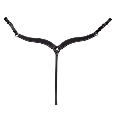 Van een dubbele laag buffelleder, bestikt met witte draad. Vernikkelde gespwerk.