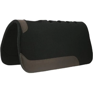 Vilten onderlegger van 18 mm dik met uitsparing bij de schoft en openingen langs de ruggengraat. Verstevigingen in buffelleder.