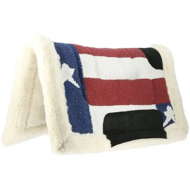 Western zadelpad van katoen met 18 mm vilten vulling en synthetische schapenvacht voering, versterking van koeienhuid.
